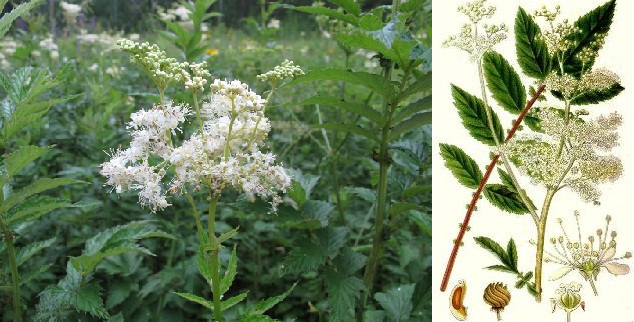 Настій таволги в'язолистої у разі ревматизму, подагри у разі простудних захворювань, для посилення росту волосся.